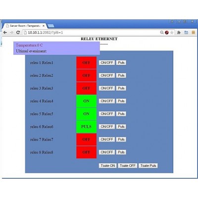 Modul 8 iesiri Relee Comanda Ethernet care permite controlul dispozitivelor electrice de la distanta folosind interfata Web usor de utilizat si poate fi integrat in aplicatii scrise cu orice limbaj de programare. Modulul functioneaza cu orice sistem de operare care are un browser.