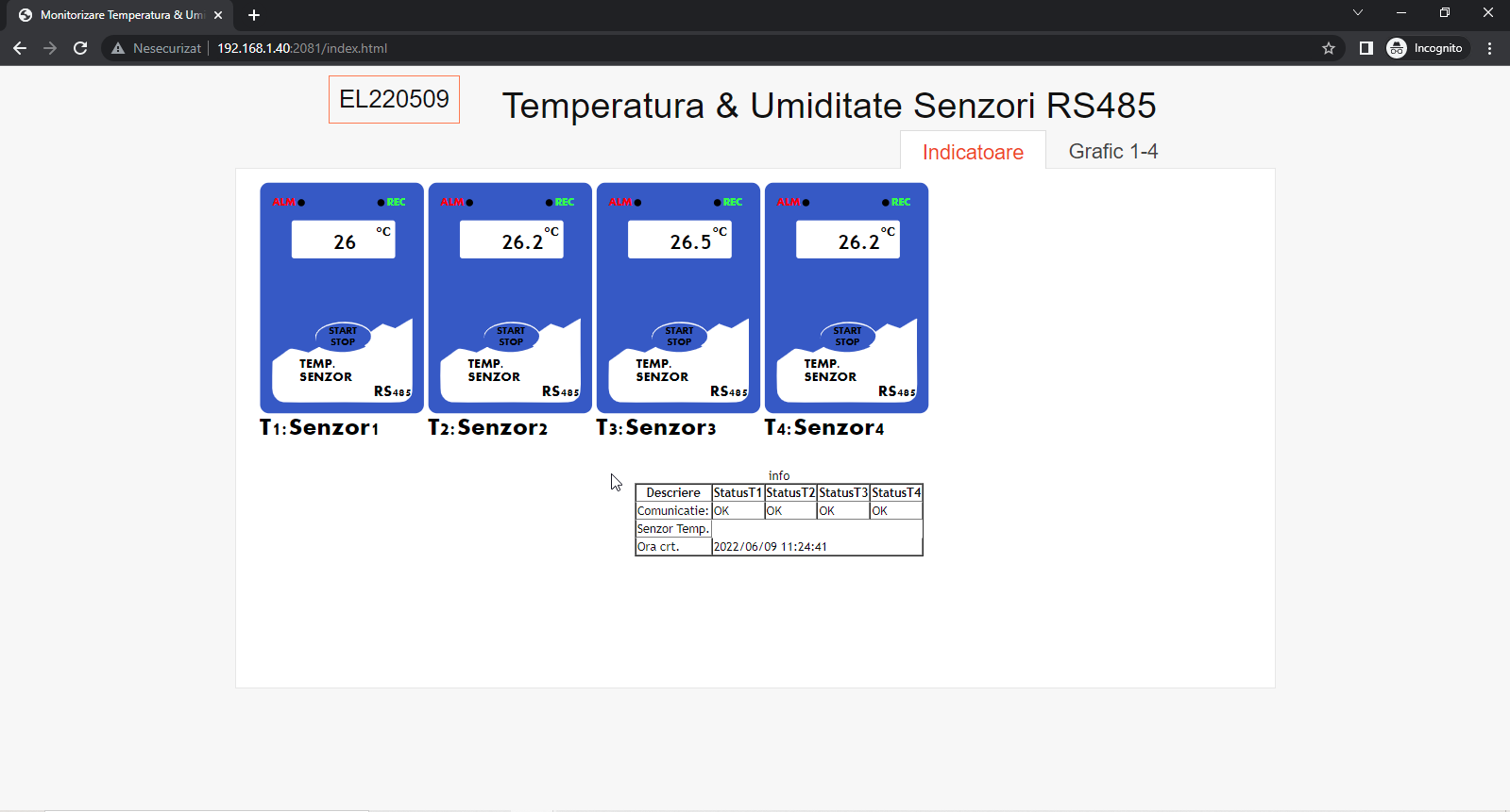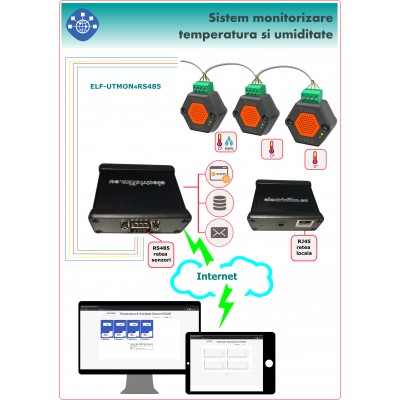 Modul monitorizare IP temperatura 4 senzori temperatura Modbus RS485 sau 2 senzori umiditate Modbus RS485 - unitate de baza pentru un sistem de monitorizare temperatura si umiditate de la distanta, web server intern, cu alerte pe email pentru alarme sau notificari.